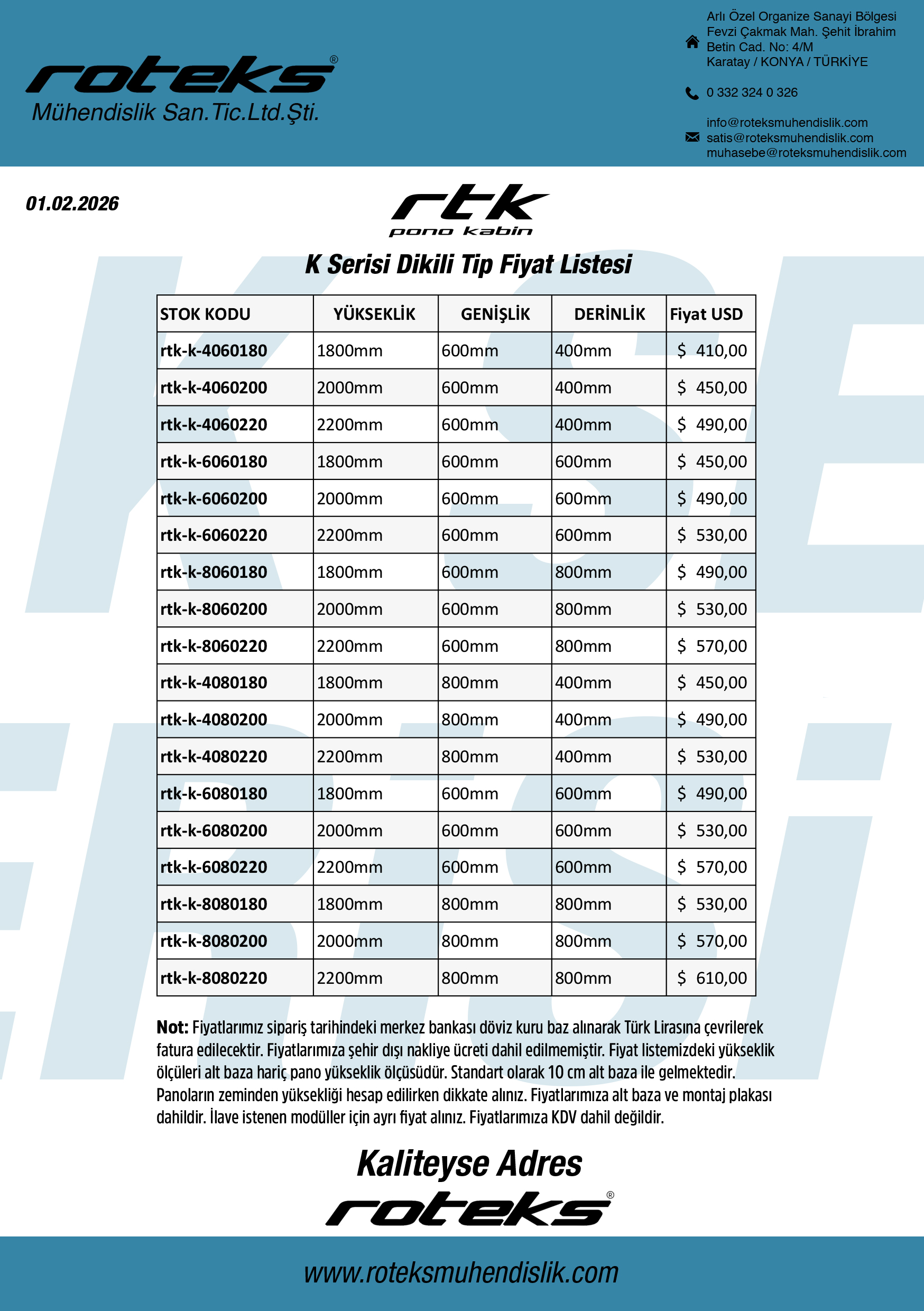 K Seri̇si̇ - Fi̇yat Li̇stesi̇